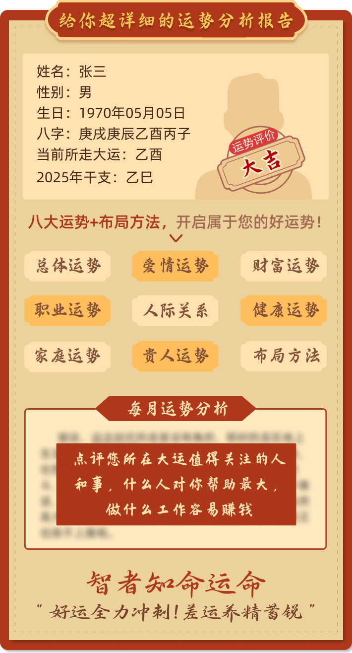 2、在您体验测算服务时,我们需要获取您的姓名和生辰命格(出生日期),为了保证数据准确性,我们建议您提供真实的个人信息,若您提供的信息有错误,会对测算结果的准确性造成偏差。我们保证您的所有个人信息除了用于生成测算数据以外,不会用于其他用途。
